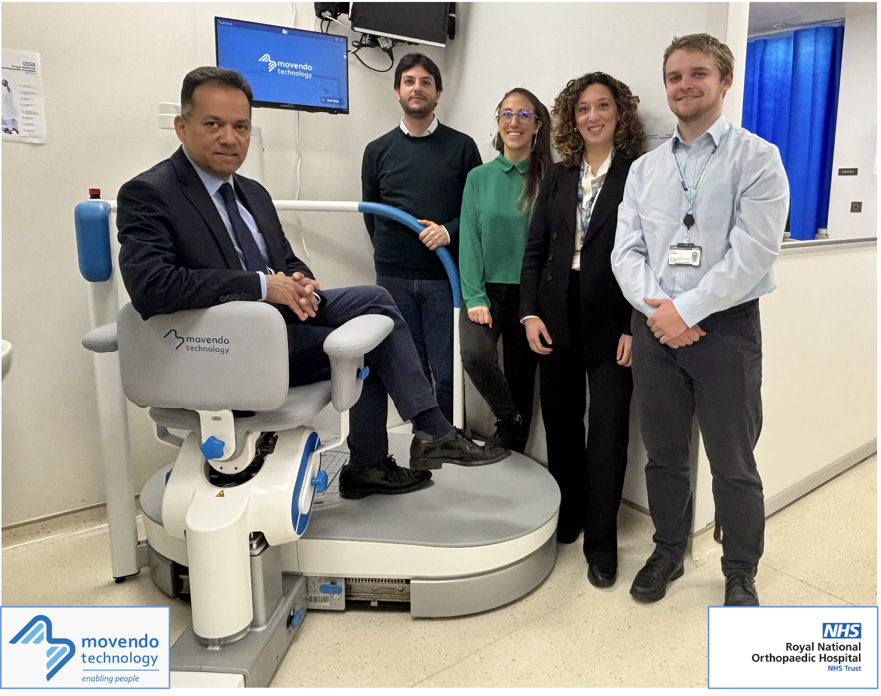 The Royal National Orthopaedic Hospital (RNOH) has become the first UK centre to host the Movendo Technology’s robotic system for lower limb muscle performance assessment and neuromuscular training. This significant in-kind investment enhances the hospital’s capability for biomechanical and musculoskeletal research.