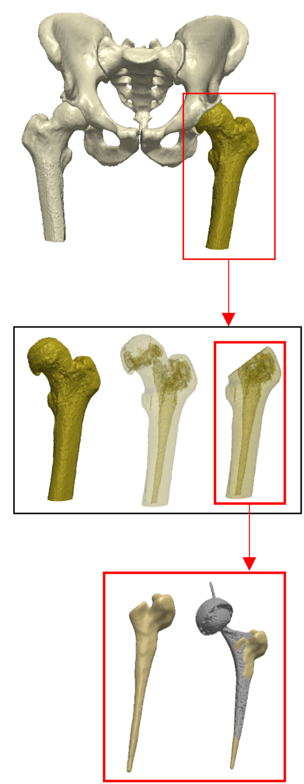 SSM may also be applied to the other side of the hip-joint; the femur. In uncemented hip replacement the orientation of the femoral stem is largely guided by the intramedullary canal of the proximal femur. As a result, the surgeon has limited intraoperative control over the achieved position of the implant.