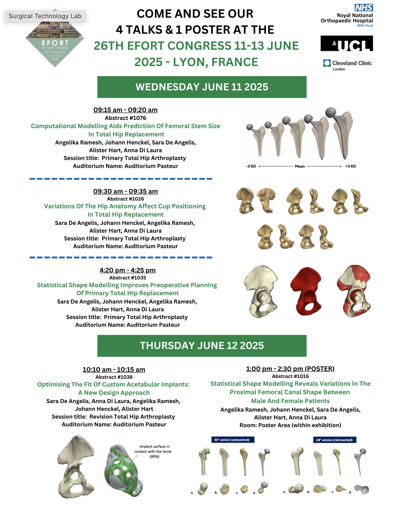 The team showcased its work at the European Hip Society (EHS) Congress, presenting four oral talks on advancing hip surgery.